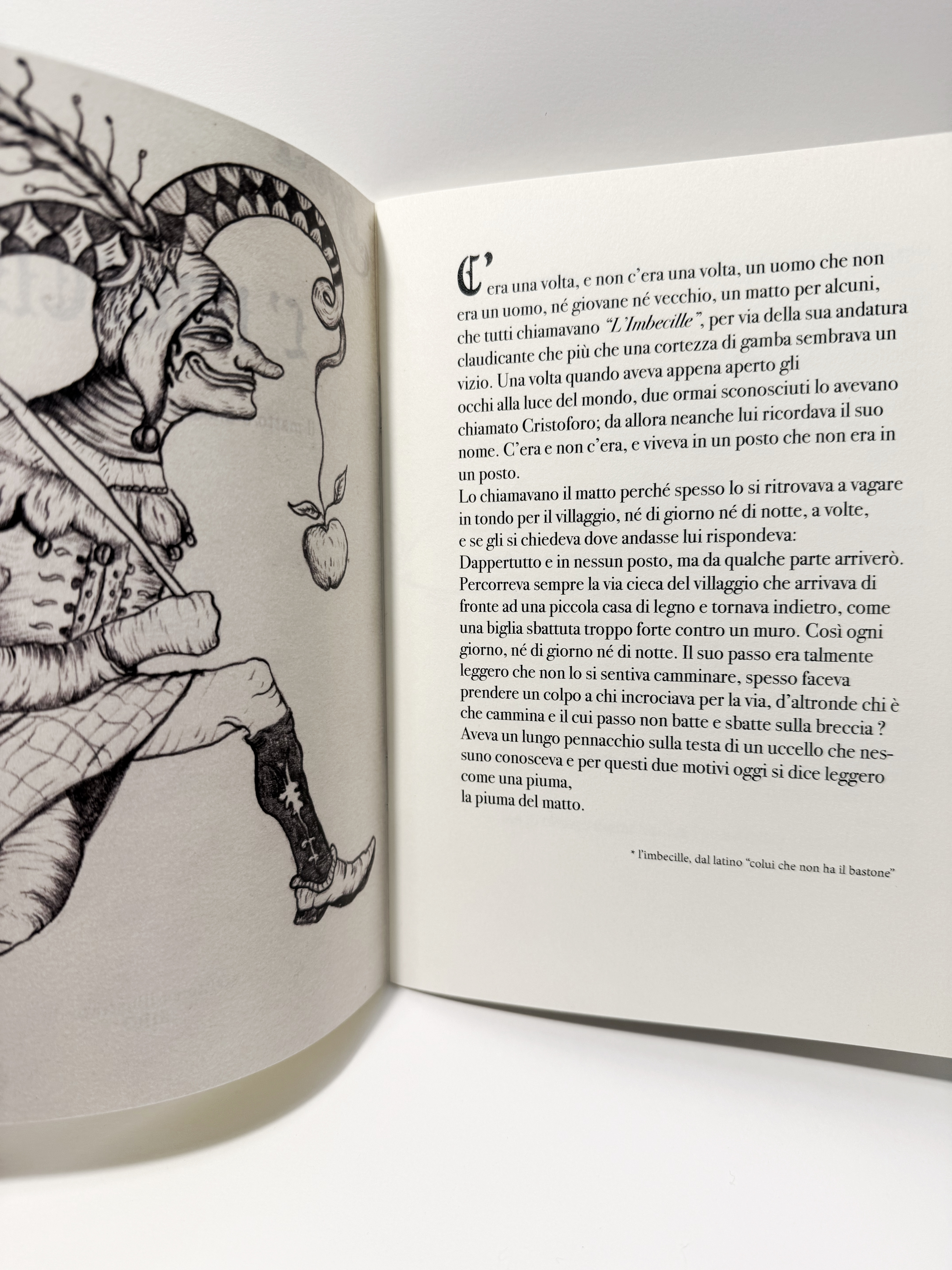 this is a book that I made in 2025 called "il matto" (the dumb) a story wrote and illustrated by me inspired by the fool from tarots