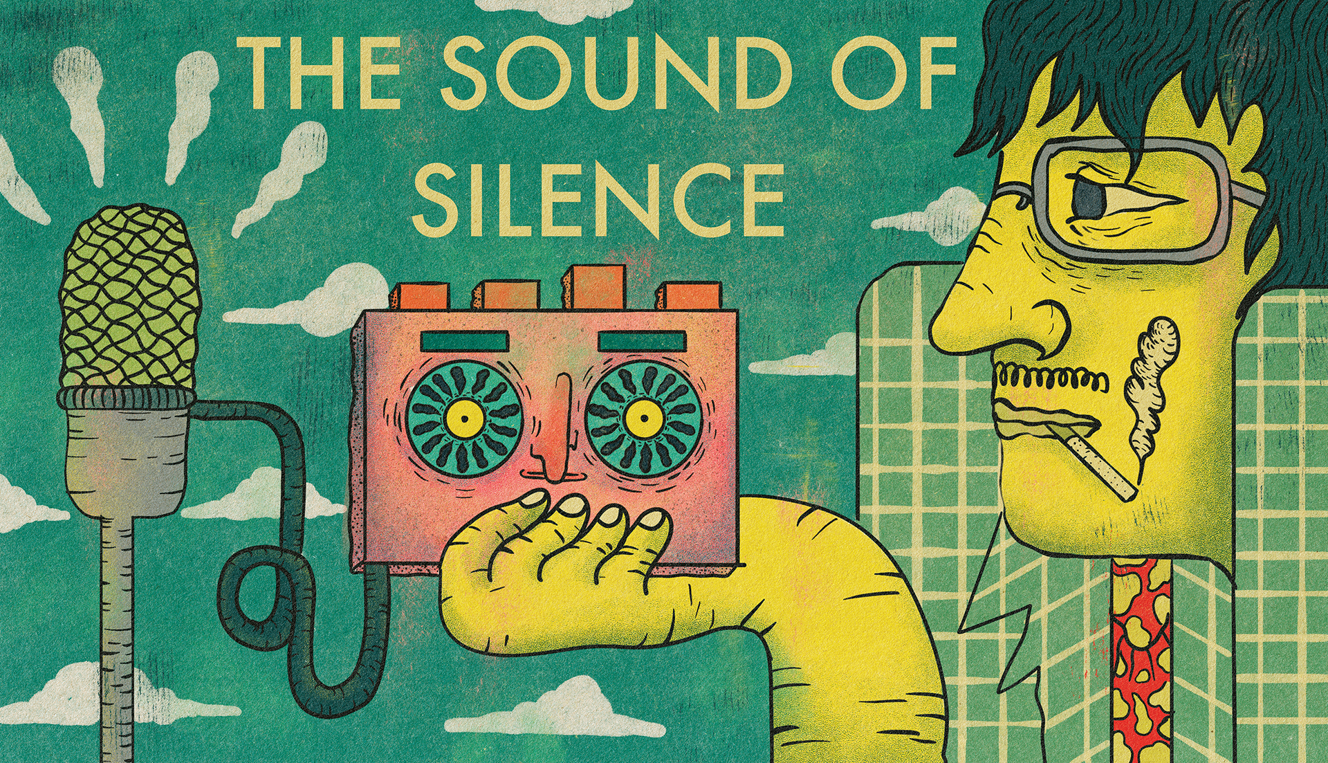 this is an illustration inspired by an editorial article about a man trying to record the silence